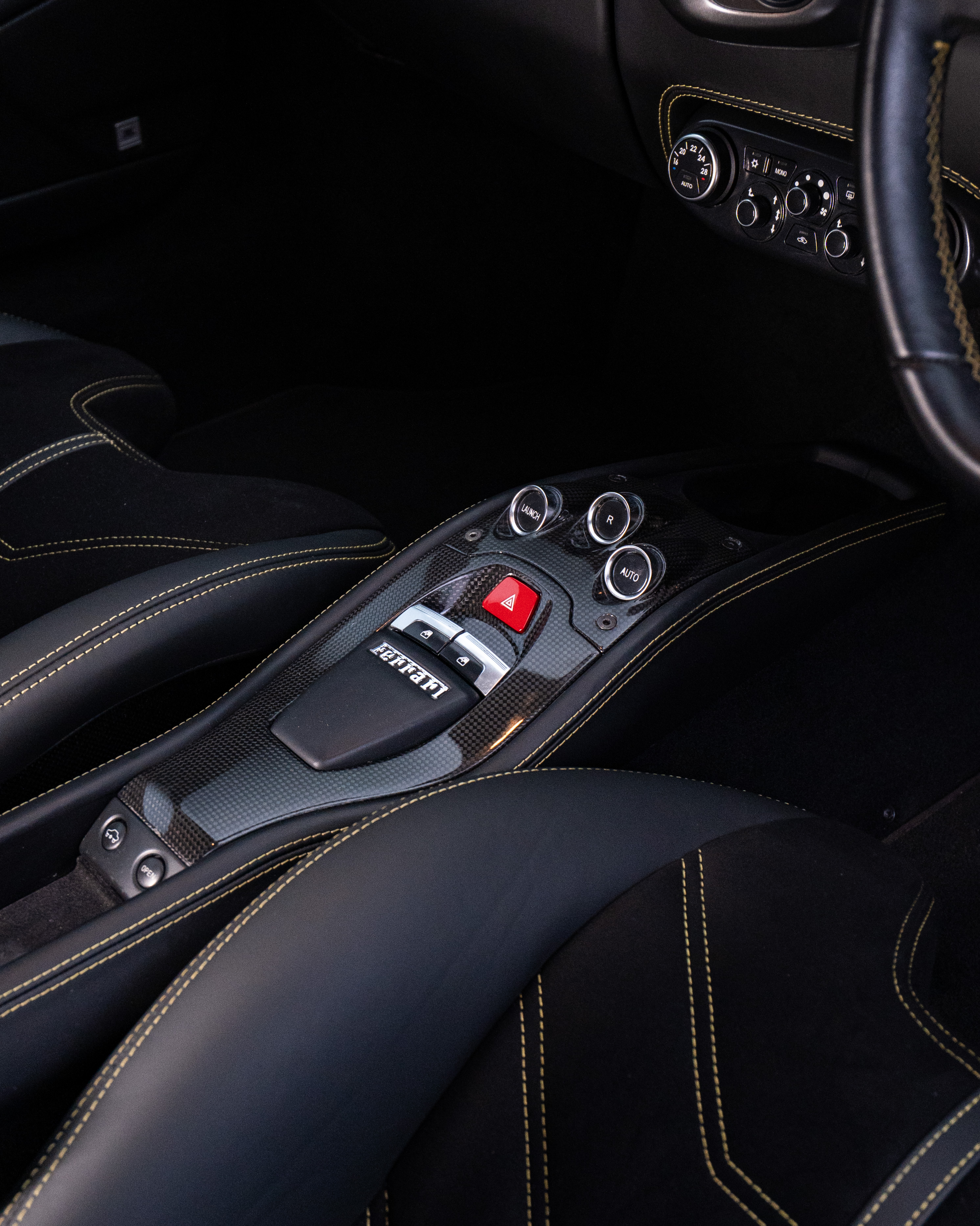 Interior: Nero (Black) Leather Interior with Giallo (Yellow) Contrast Stitching
