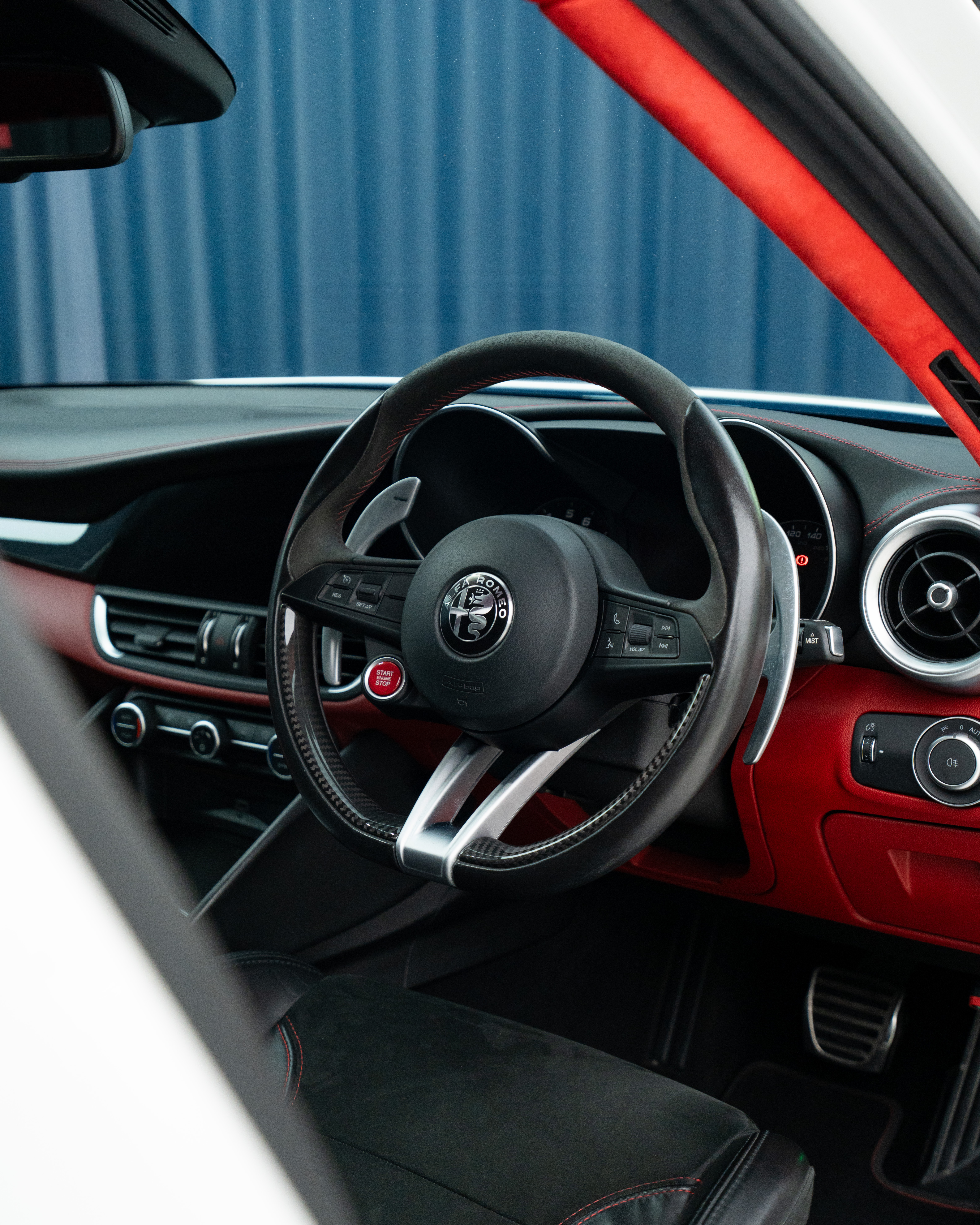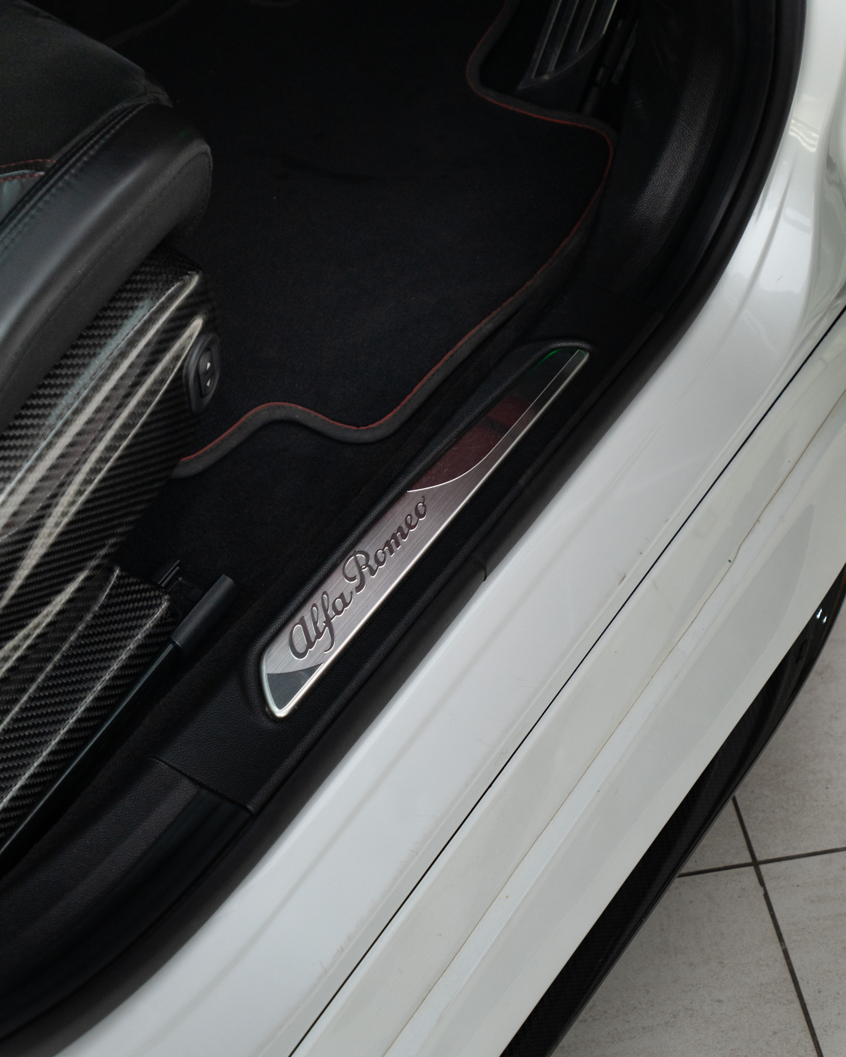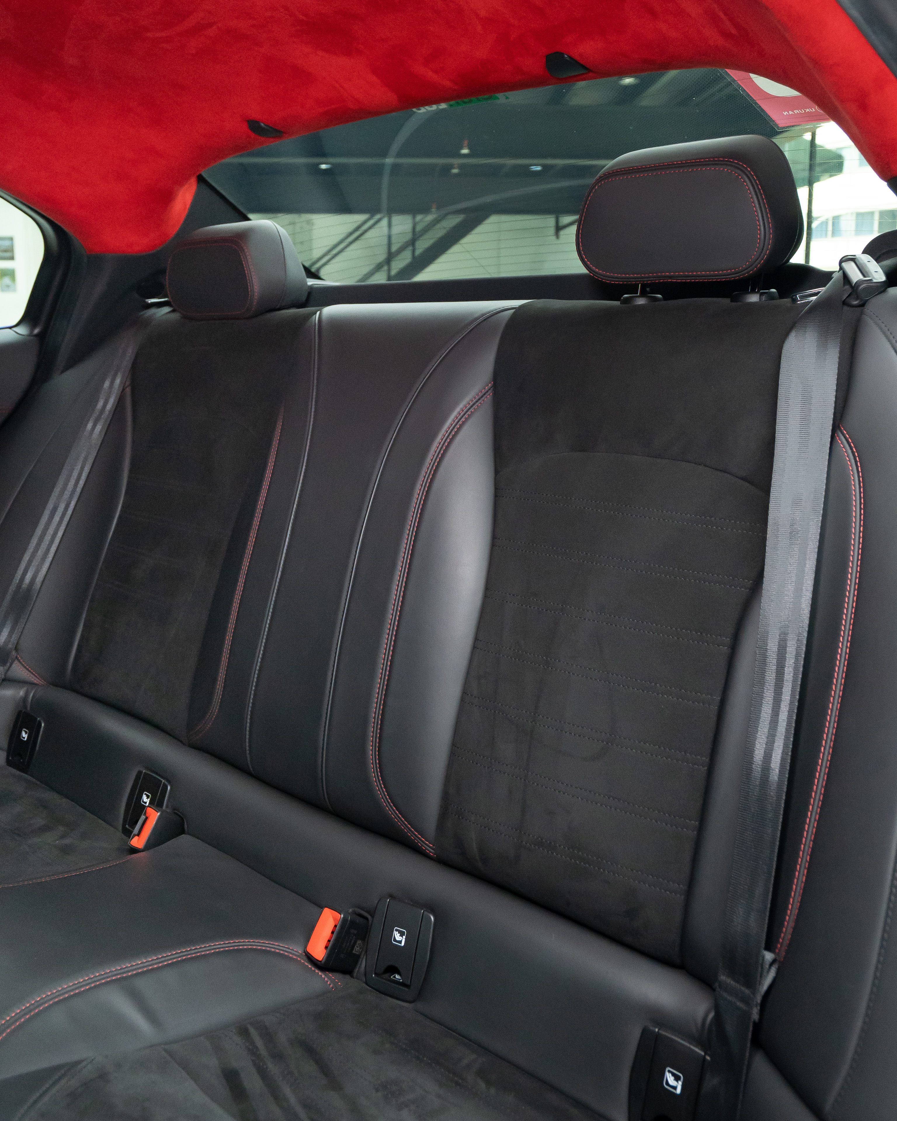 Interior: Black leather / Alcantara combination with Red contrast stitching with Carbon panels trim