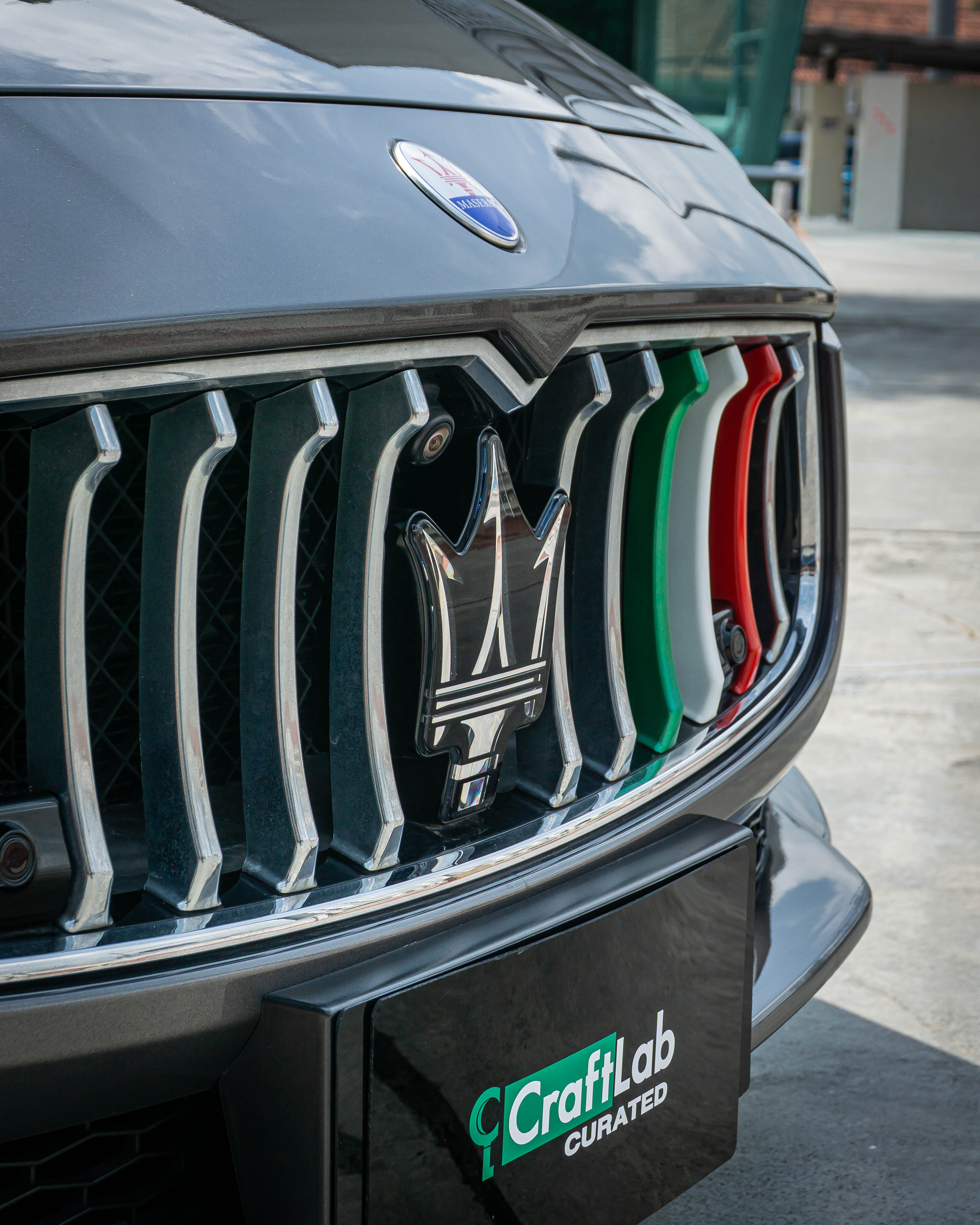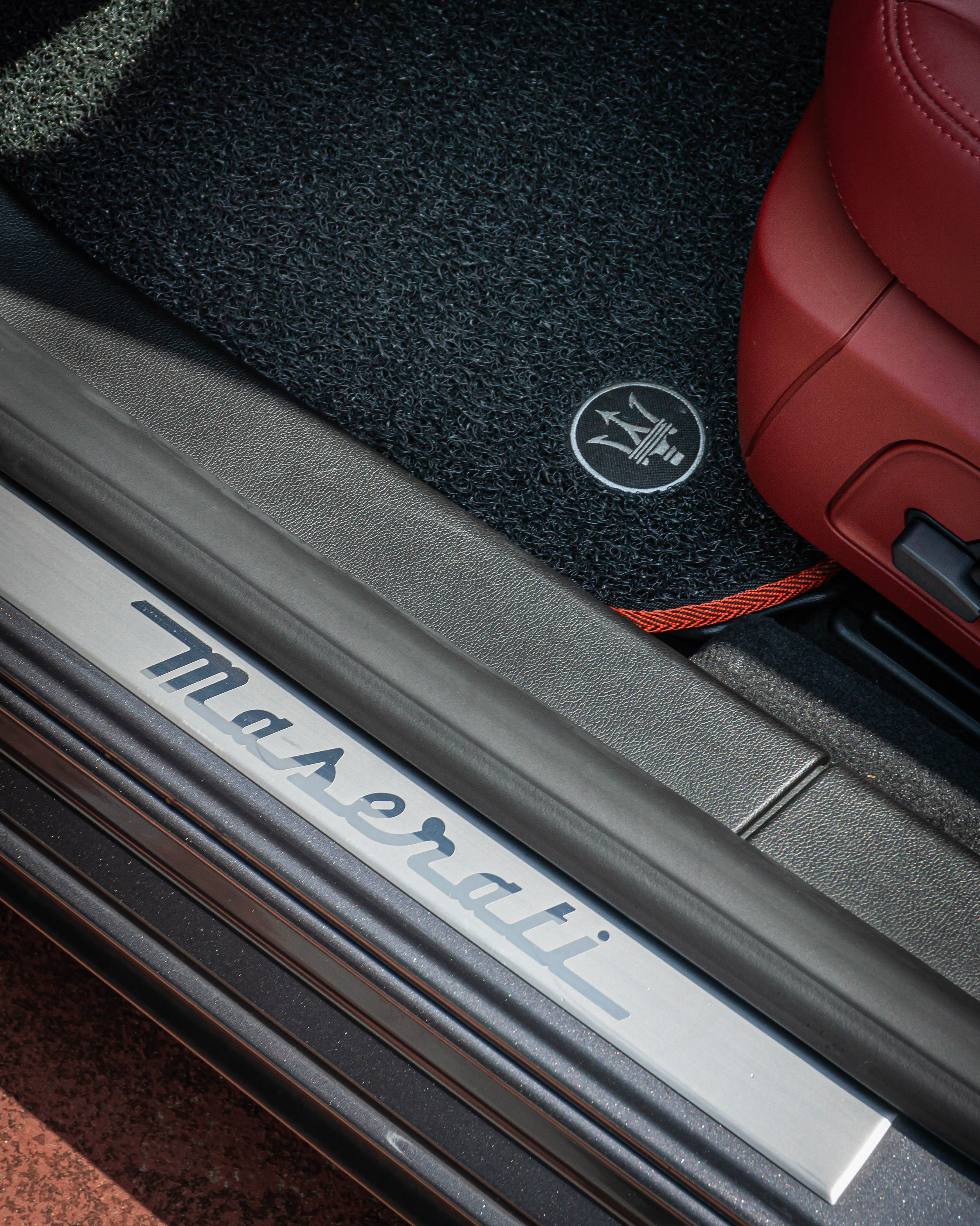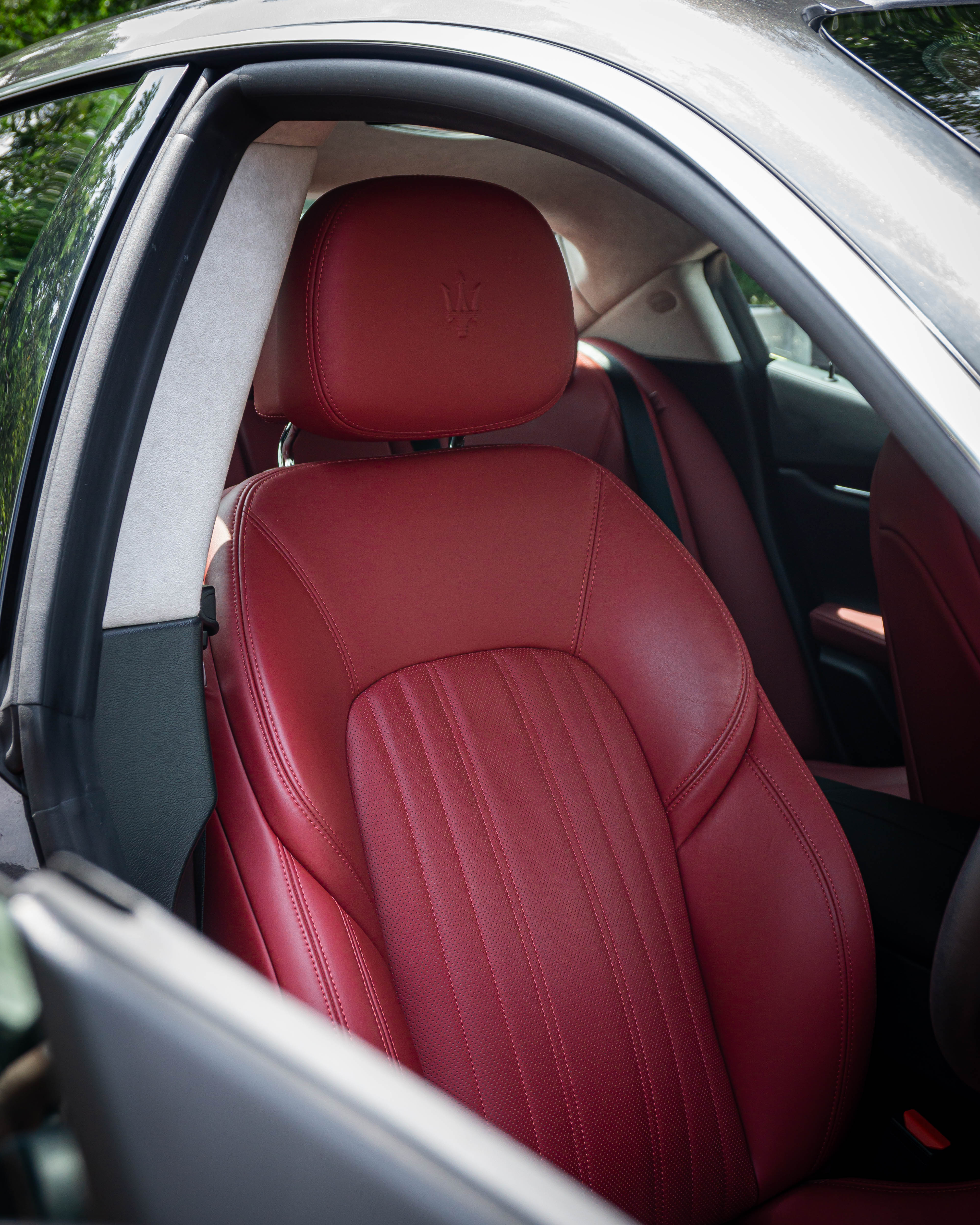 Exterior: Grigio Maratea (grey metallic) with the signature Maserati front grille with the tricolore detail on the grille fins