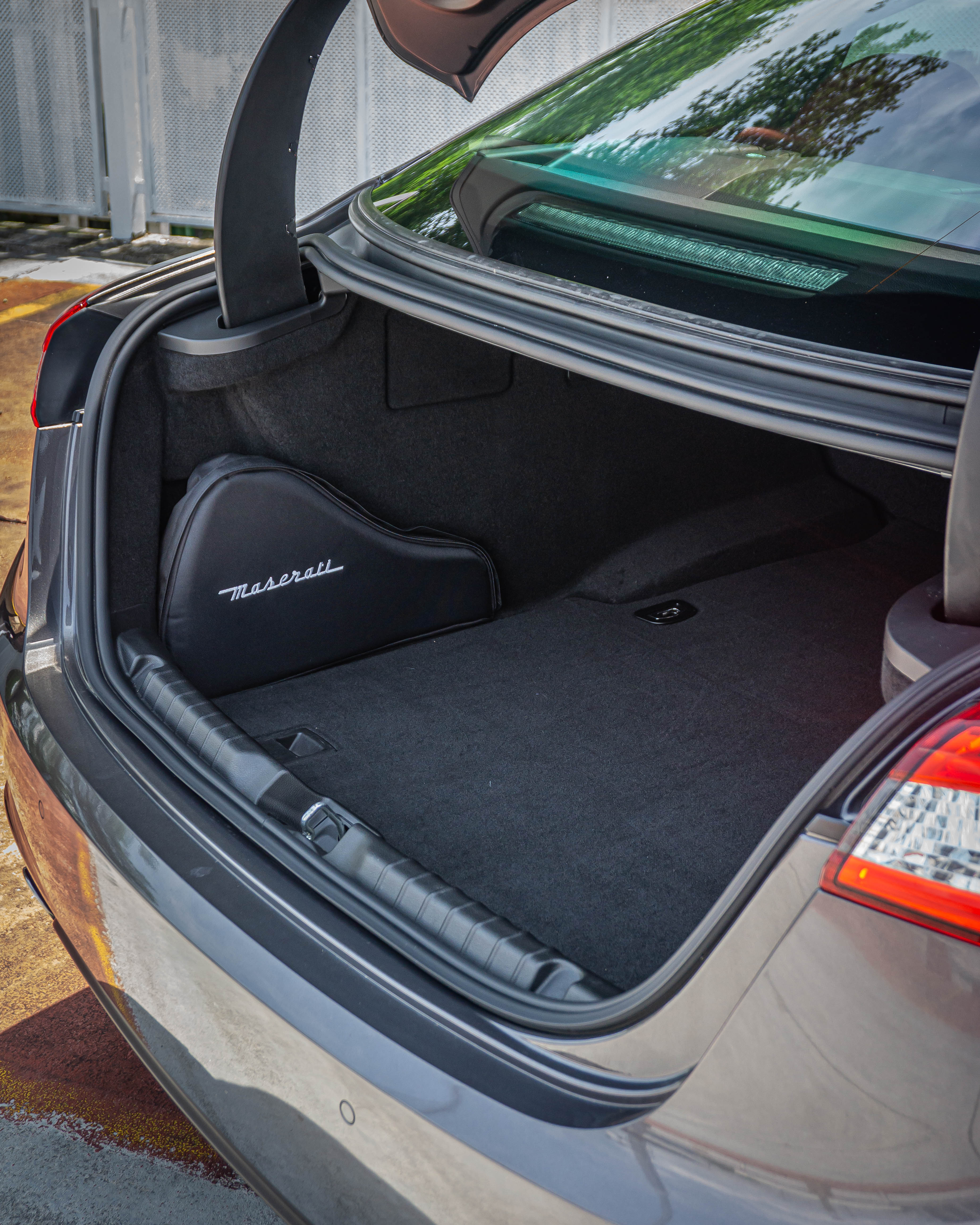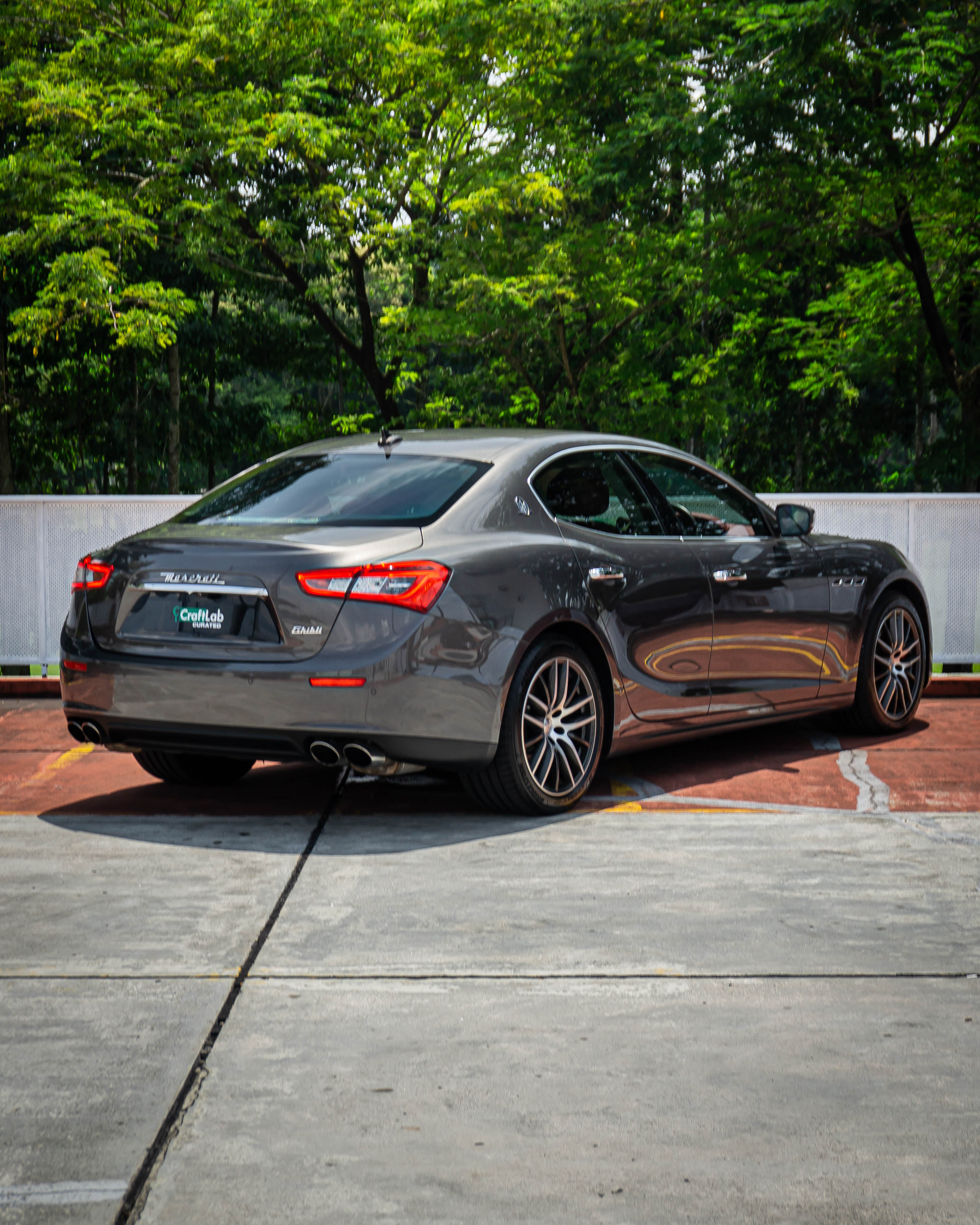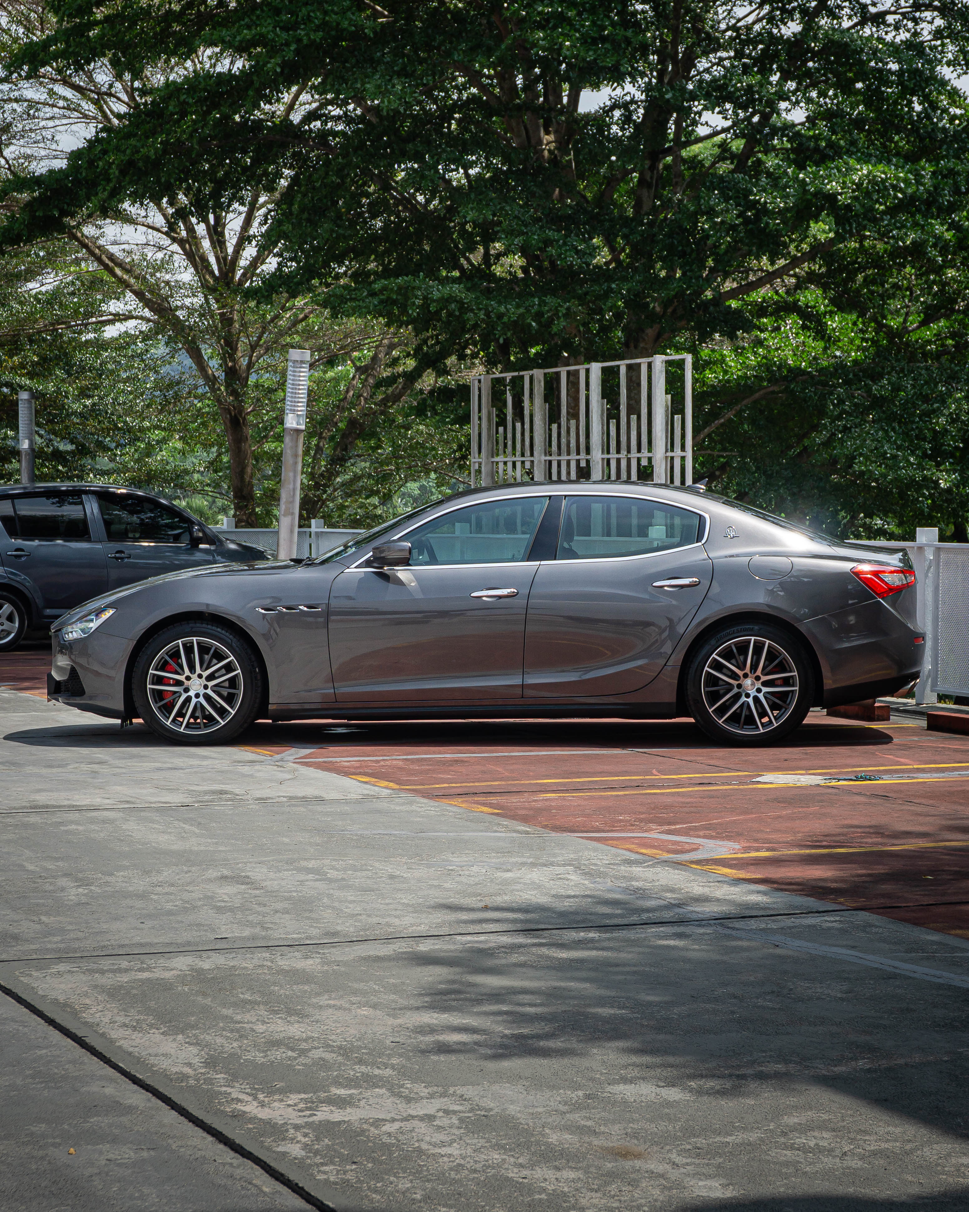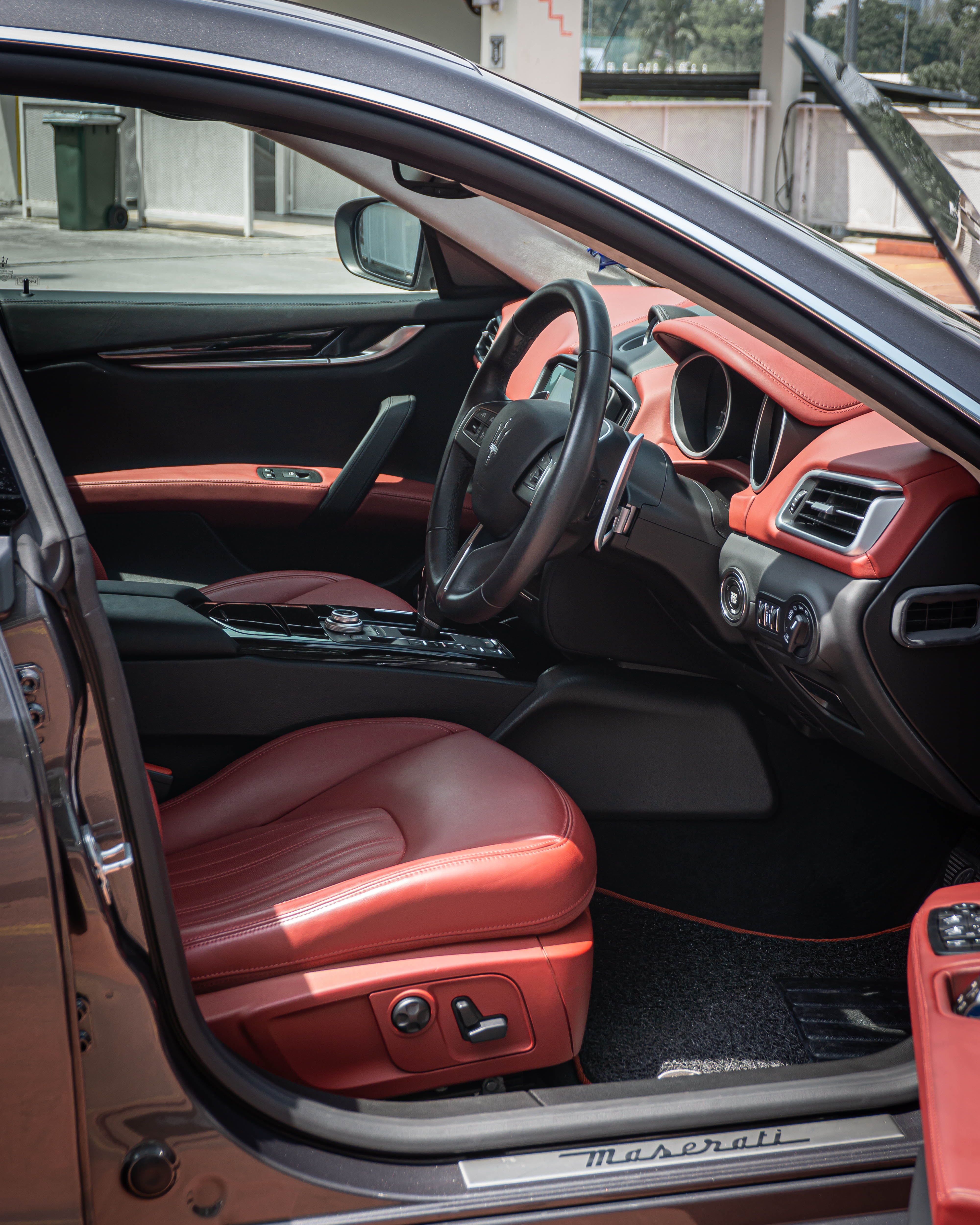 Exterior: Grigio Maratea (grey metallic) with the signature Maserati front grille with the tricolore detail on the grille fins